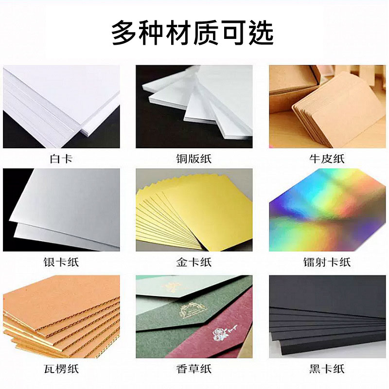 印刷紙張:銅版紙、雙膠紙、啞粉紙、珠光紙、其他藝術(shù)紙(藝術(shù)紙種類較多我們可以免費(fèi)提供紙樣供您選擇)