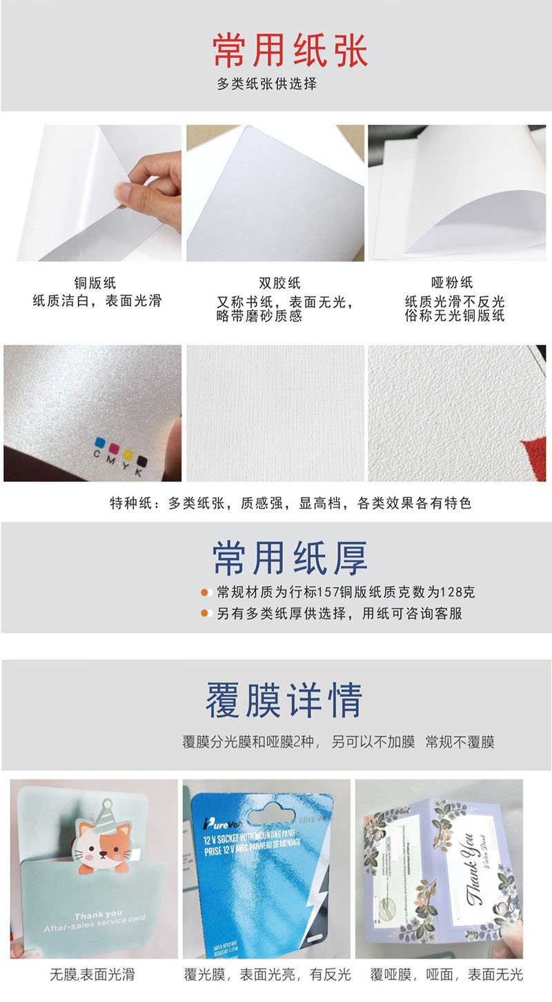 印刷紙張:銅版紙、雙膠紙、啞粉紙、珠光紙、其他藝術(shù)紙(藝術(shù)紙種類(lèi)較多我們可以免費(fèi)提供紙樣供您選擇)